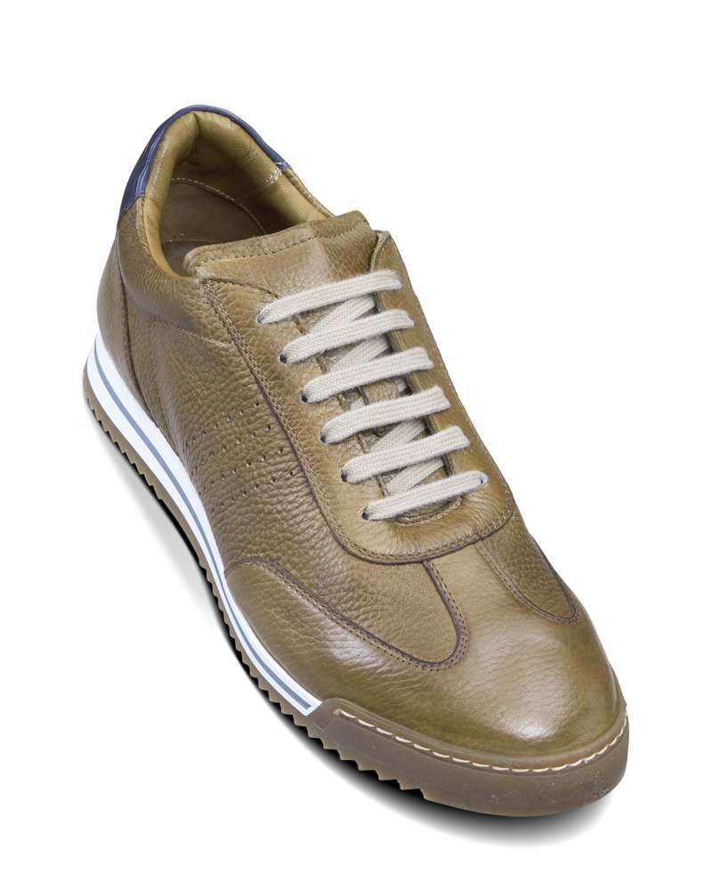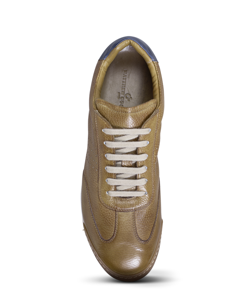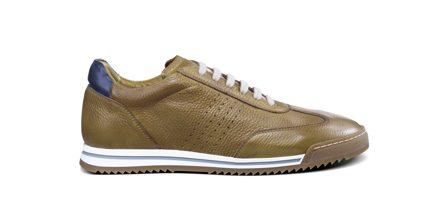 The Bampton sneaker in light brown grained leather offered in different colors in suede calfskin and unlined grained leather for exceptional comfort is available in store and on our website.